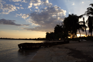 | Pet Cuban Parrot at Fidel's Casa | Sunset at the Bay of Pigs (view from Fidel's veranda) |