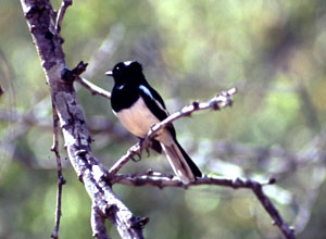 Lesser Vasa Parrot (Coracopsis nigra) - Berenty Spiny Forest | Madagascar Magpie-Robin (Copsychus albospecularis) - Berenty |